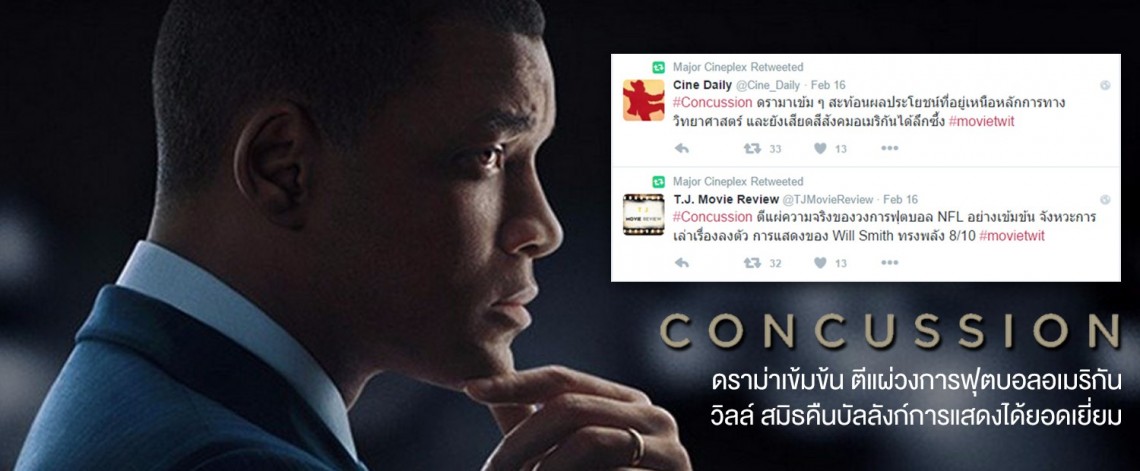 แม้จะพลาดหวังไม่ได้เข้าชิงรางวัลออสการ์ แต่ Concussion ก็ยังเป็นหนังคุณภาพอีกเรื่องหนึ่งที่น่าจับตามองมากทีเดียว ด้วยเรื่องราวที่เข้มข้นของการตีแผ่ความจริงที่อยู่เบื้องหลังวงการฟุตบอลของอเมริกา ผสานกับการค้นพบโรคที่ไม่เคยมีมาก่อนทางการแพทย์ที่สร้างความประหลาดใจให้กับทั้งวงการเป็นอย่างมาก พร้อมด้วยการแสดงของวิล สมิธที่ถ่ายทอดเรื่องราวสุดมหัศจรรย์นี้ได้อย่างน่าประทับใจ เรียกได้ว่า Concussion คือหนังที่ครบองค์ประกอบของการเป็นหนังคุณภาพอีกเรื่องที่ไม่ควรพลาดทีเดียว!