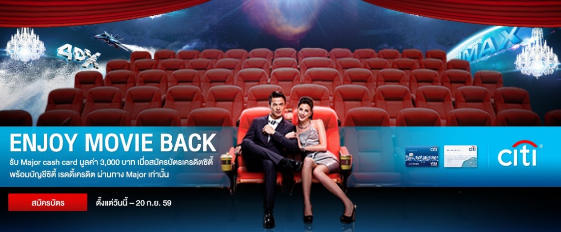 •  สมัครออนไลน์ที่ลิ้งค์เท่านั้น https://www.citibank.co.th/th/forms/Apply-Credit-Card.htm?ecid=majorcineplex