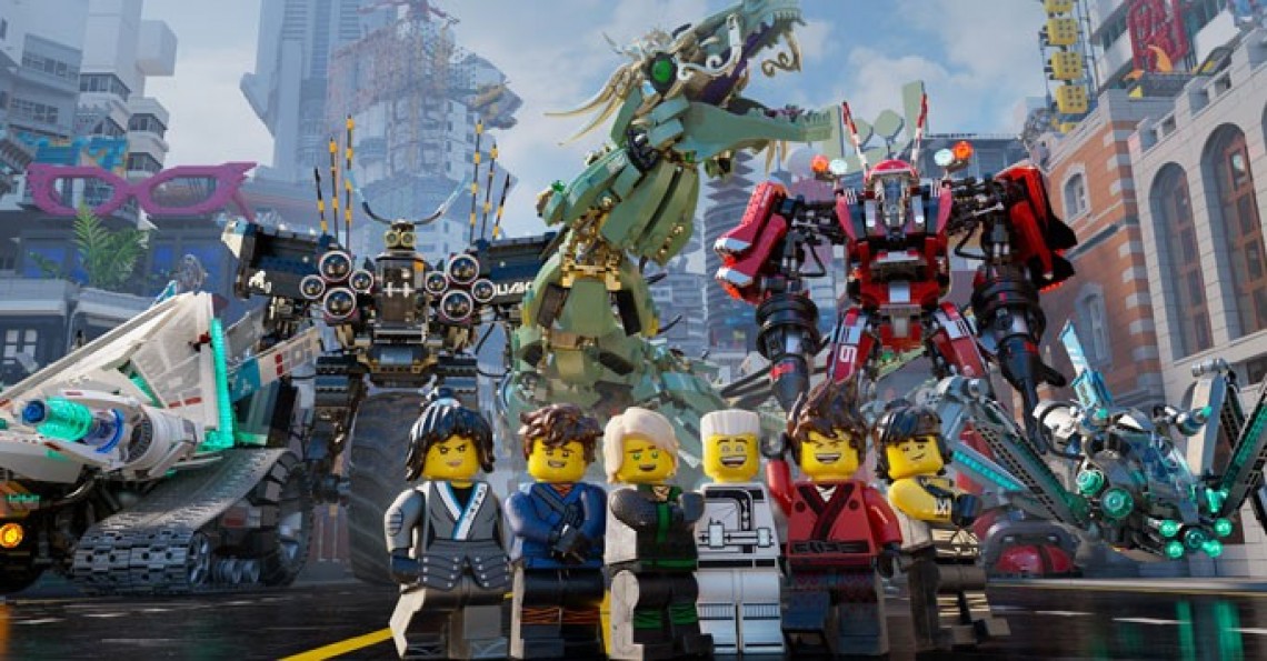 นักสร้างแอนิเมชันได้ดึงเอาฐานข้อมูลตัวต่อดิจิตัลมาใช้จากที่ได้รวบรวมไว้ตั้งแต่สร้างหนังเรื่องแรก ตัวต่อแต่ละชิ้นได้รับการเรนเดอร์ ให้แสงเงา กำหนดพื้นผิว และปรับแต่งเพื่อสะท้อนร่องรอยการใช้งานที่สมจริง จากนั้นจึงนำมาใช้สร้างเป็นฉาก ของประกอบฉาก ยานพาหนะ และประชากรในแบบ LEGO นอกจากนี้ยังมีการสร้างตัวต่อดิจิตัลอีก 3,463 แบบขึ้นมาใหม่ รวมถึงมีการออกแบบเครื่องแต่งกายของหุ่นเลโก้ดิจิตัลอีก 350 แบบ และหินดิจิตัลอีก 100 แบบ มีเม็ดทรายกว่า 100 ล้านเม็ดปรากฏอยู่บนชายหาดเมืองนินจาโกในช็อตเดียว ขณะที่ตัวเมืองและภูเขาที่โอบล้อมนั้นสร้างขึ้นจากตัวต่อเกือบ 12.7 ล้านชิ้น ด้วยขนาดราว 841 ตารางเมตรในโลกความเป็นจริง เมืองนี้จึงมีขนาดเล็กกว่าฐานของมหาพิระมิดแห่งกีซาเพียงเล็กน้อย