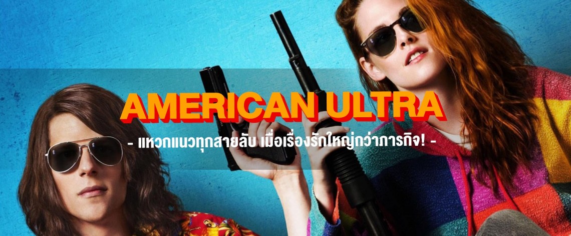 เมื่อขี้ยาจอมเมาปุ๊นกลับกลายเป็นสายลับสุดโหด ตะลุยหนีตายท่ามกลางเมืองอันแสนธรรมดา แต่ปฏิบัติการณ์ที่ไล่ล่านั้นกลับระดับพระกาฬ! American Ultra หนังแอคชั่น-ตลก-โรแมนติกที่เพียบพร้อมไปด้วยมุกตลกหน้าตายและมุกตลกสุดเด๋อด๋าที่พร้อมกวนบาทาให้เราอยากจะเอาไปแนบหน้าเจ้าตัวละครประสาทพวกนั้นซะจริงๆ นี่คือหนังแนวสายลับอีกเรื่องที่การนำเสนอมันกวนทีนโดนใจ และยิ่งทำให้หมั่นเขี้ยวมากขึ้นด้วยการแสดงที่เคมีเข้ากันเว่อร์ระหว่าง เจสซี่ ไอเซนเบิร์ก หรือ มาร์ค ซักเคอร์เบิร์ก แห่ง The Social Network และ คริสเทน สจ๊วร์ต หรือ เบลล่า จาก Twilight Saga นั่นเอง