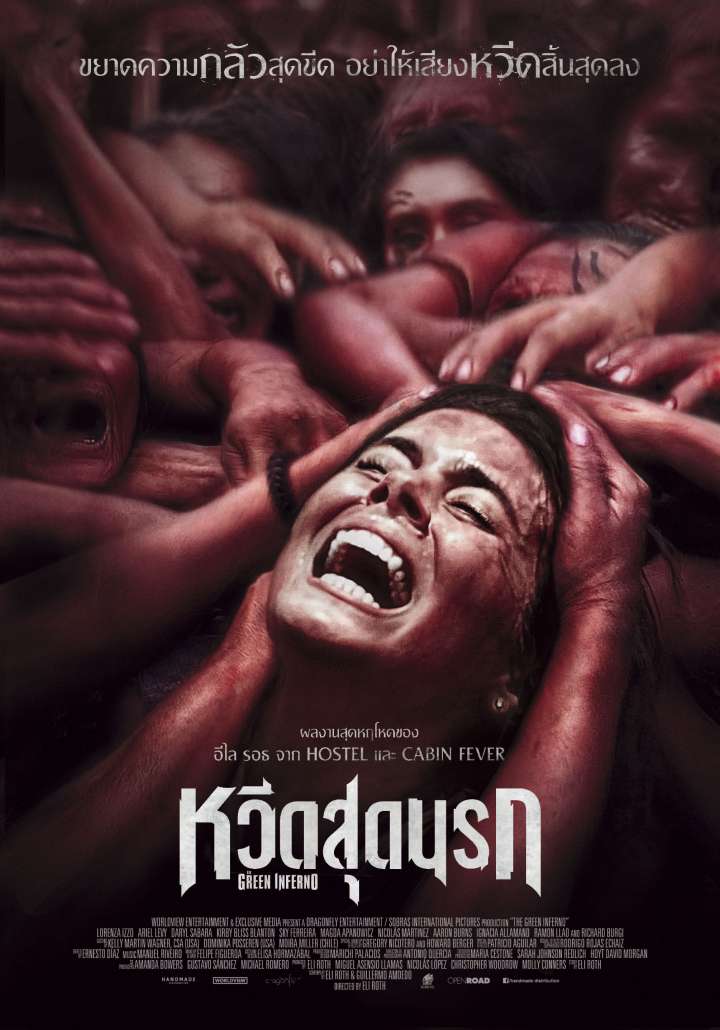 The Green Inferno หนังสุดสยอง ดิบเถื่อนกับเรื่องราวที่ชวนทำให้ผู้ชมระทึกตลอดทั้งเรื่อง เมื่อกลุ่มนักศึกษาชาวอเมริกัน ได้เดินทางเข้าป่าเพื่อทำงานวิจัยเรียนรู้เกี่ยวกับเผ่าพันธุ์ของชนเผ่าพื้นเมือง เชื้อสายต่างๆ แต่การเดินทางครั้งนี้พวกเขากลับประสบอุบัติเหตุ เครื่องบินตกลงกลางป่าอเมซอน สถานที่ที่เต็มไปด้วยความโหดหฤหรรษ เขย่าขวัญสั่นประสาท พวกเขาต้องตกเป็นเหยื่อของพิธีกรรมคร่าวิญญาณอันน่าขนลุก สิ่งเดียวที่พวกเขาทำได้คือการหนีเพื่อเอาชีวิตรอดจากชนเผ่ากินคนที่จ้องจะจับพวกเขากินเป็นอาหาร