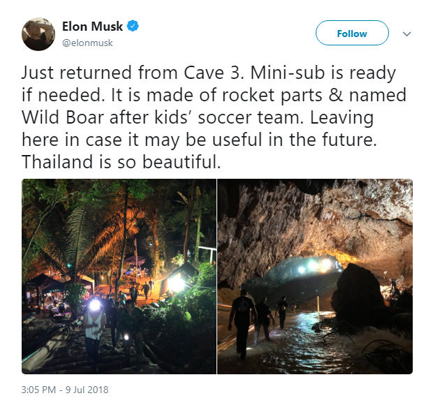 สิ่งหนึ่งที่ข่าวคราวการช่วยชีวิตทีมหมูป่าอะคาเดมีสะท้อนออกมาให้เห็นคือ ความร่วมแรงร่วมใจที่หลั่งไหลมาจากทั่วโลก นับเป็นภารกิจสุดหินที่ต้องใช้ความสามารถของผู้เชี่ยวชาญที่นับเป็นตัวท็อปจากหลากหลายประเทศ อีกทั้งสื่อมวลชนทั้งไทยและต่างประเทศล้วนจับตาติดตามภารกิจนี้อย่างใกล้ชิด เพราะมันไม่ใช่แค่การช่วยชีวิต แต่มันแสดงให้เห็นถึงการรวมเป็นหนึ่งของคนทั่วโลก เช่นเดียวกันกับ อีลอน มักส์ ซีอีโอแห่งบริษัทยักษ์ใหญ่จากอเมริกา ผู้นำด้านการผลิตรถยนต์ใช้ไฟฟ้าที่ยื่นมือเข้ามาช่วยโดยไม่หวังผลตอบแทน ออกแบบแคปซูลช่วยชีวิตด้วยการลงไปสำรวจข้อมูลในพื้นที่จริงโดยไม่มีใครร้องขอ สิ่งยืนยันว่าเขามาด้วยใจคือ การที่เขาบอกว่า แม้แคปซูลที่เขาออกแบบอาจไม่ได้ใช้จริงในวันนี้ แต่เขาจะมอบเอาไว้ให้เพราะมันสามารถเป็นประโยชน์ได้อีกมากในอนาคต วันนี้เราไปรู้จักผู้ชายคนนี้ให้มากขึ้นกว่าเดิมกัน